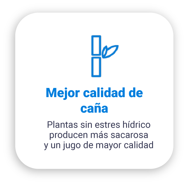Si bien, no puedes controlar la temperatura o la radiación solar en un campo abierto, si puedes controlar cada gota de agua, la dosis de nutrientes que contiene y puedes aplicar ambas en un tiempo preciso. Brindando el agua y nutrientes de manera eficiente y precisa, podemos aumentar los rendimientos, aumentar el contenido de la sacarosa y extender la vida de la planta.